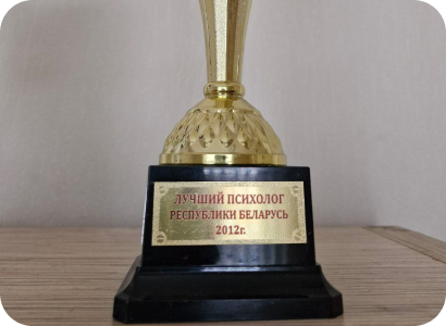 2010–2012 участвовала в разработке нормативных документов для психологов государственных учреждений системы здравоохранения Республики Беларусь».